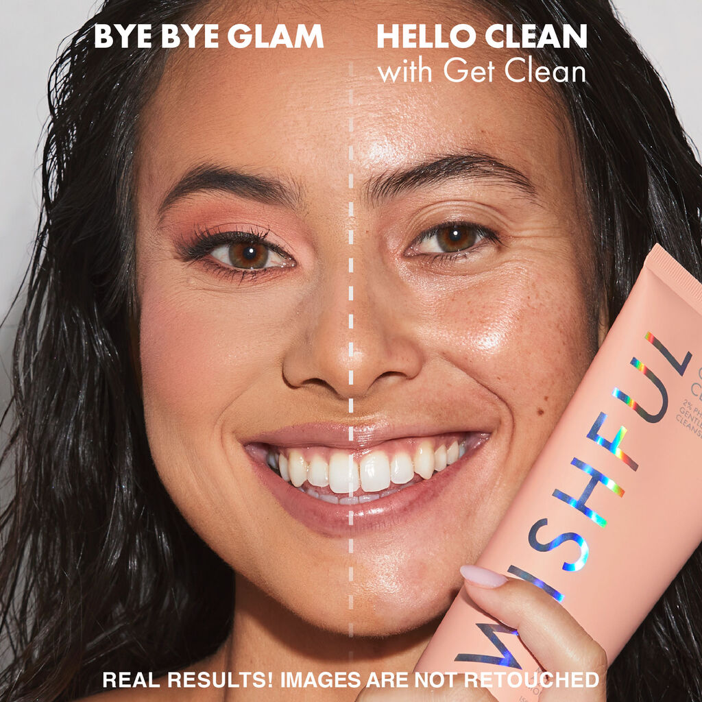 Get Clean is a hardworking cleanser that is gentle and skin-loving enough for even the most sensitive skin. 2% Gluconic Acid (PHA) gently exfoliates the skin while Sea Moss helps retain moisture leaving the complexion refreshed and supple. Get Clean is packed with Coconut & Amino Acid Derived Surfactants that melt away makeup while Salicylic Acid & Willow Bark work to unclog pores without stripping the skin. To turn Get Clean’s gel formula into a rich, creamy, makeup melting foam, add a little water and massage into skin.