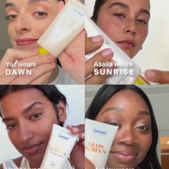 Your glow, but better! Supergoop! Glowscreen SPF 40 is a glowy, tinted sunscreen that delivers a luminous, sun-kissed finish while priming your skin for makeup. It visibly evens skin tone, provides all-day hydration, and protects with broad-spectrum SPF 40.